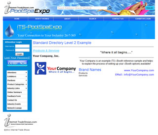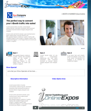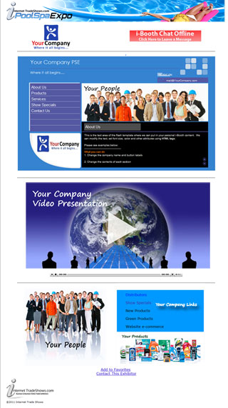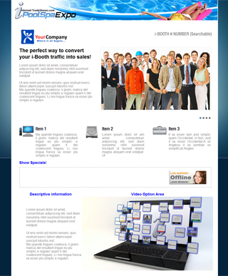 | Listed below are sample i-Booths. Your i-Booth is your virtual booth in our online expo. We offer standard template designs as well as custom i-Booth options. Scroll your mouse over each box to preview the i-Booths and CLICK on them to experience the i-Booth in action. Note: Basic and Standard memberships do not facilitate i-Booths. Business, Excecutive and Premium memberships sustain i-Booth options. |